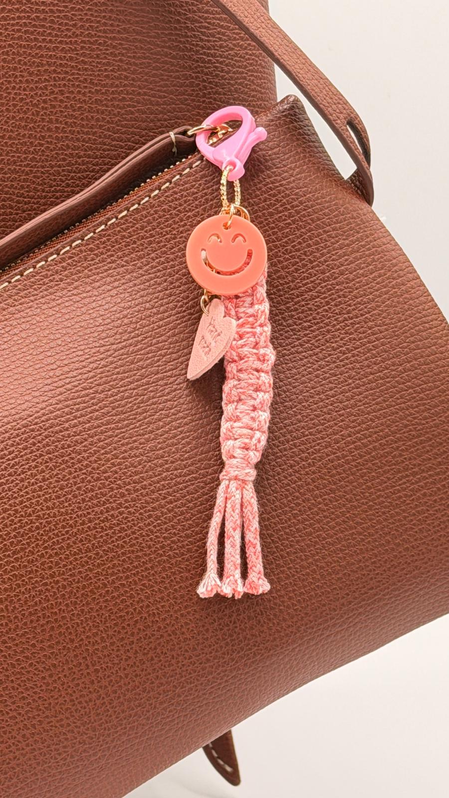 Porte-clé - cordon tressé rose